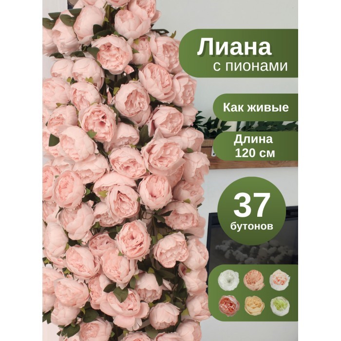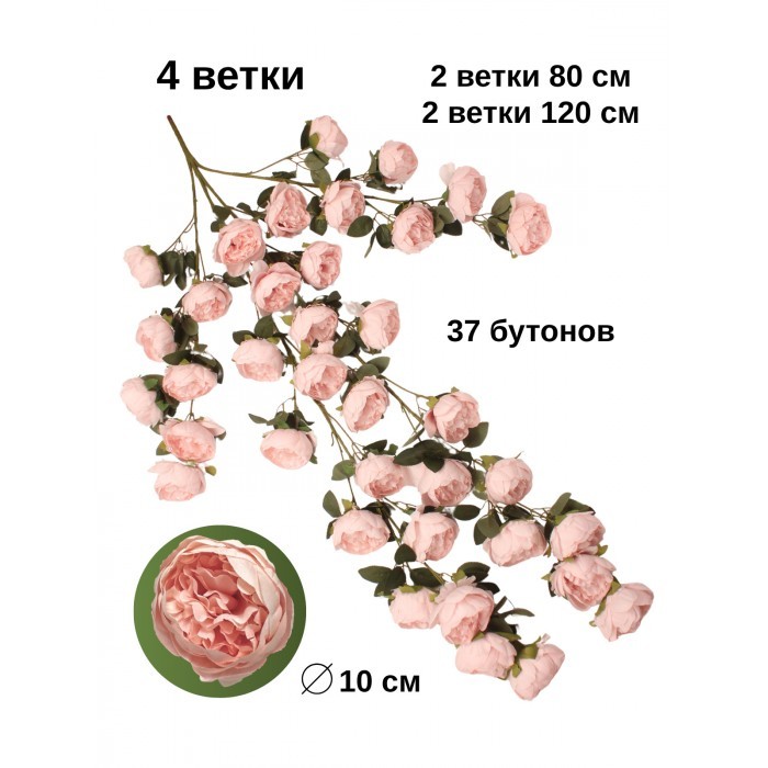 Цветы искуственные Пионы каскадные (37 штук, 120 см, цветок 10 см) розовый холодный 265900