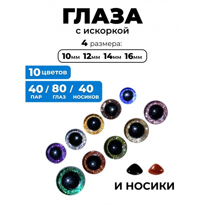 Глазки искорки+носики для игрушек с фиксатором (80 штук глаза/40 штук носики) 262656