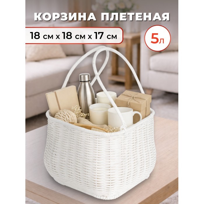 Корзина плетеная с ручками Фонарик (2 ручки) (20*18*16 ) иск/ротанг, белый 264265
