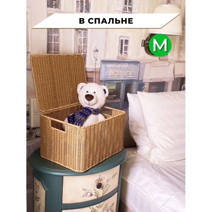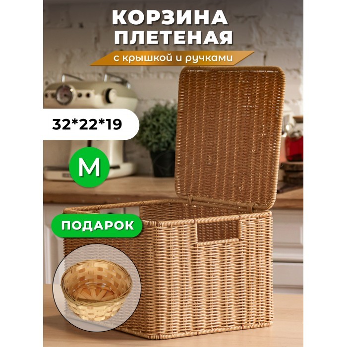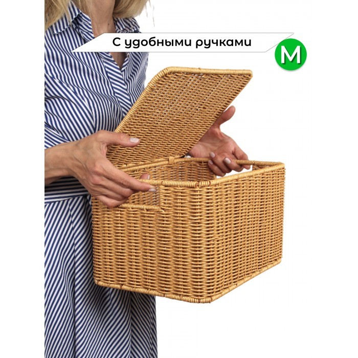 Корзина плетеная с/крыш M 320*220*180-mpl-fbo + салатник 16*7см иск/ротанг, песочный 261623