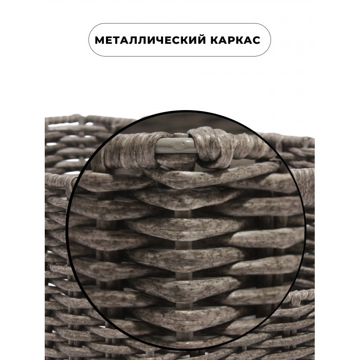 Корзина плетеная с/крыш КОМПЛЕКТ 4шт (S, M, L.XL) + иск/ротанг, серый 266235