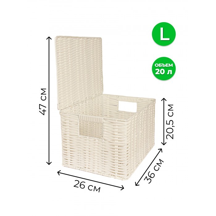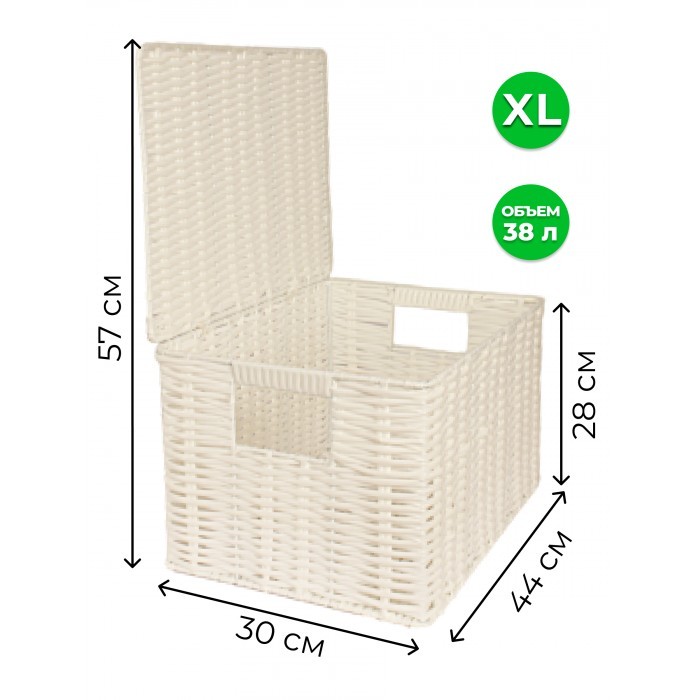 Корзина плетеная с/крыш КОМПЛЕКТ 4шт (S, M, L.XL) + иск/ротанг, белый 266236