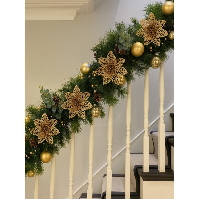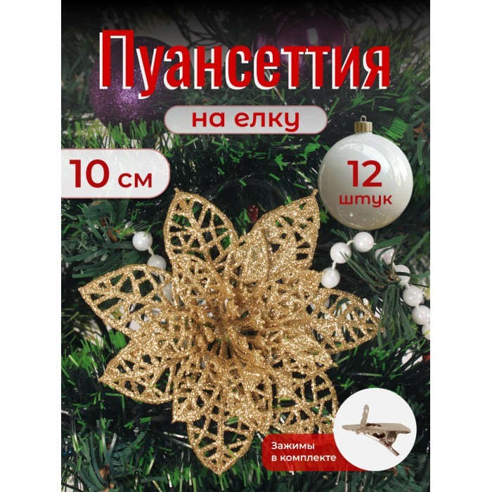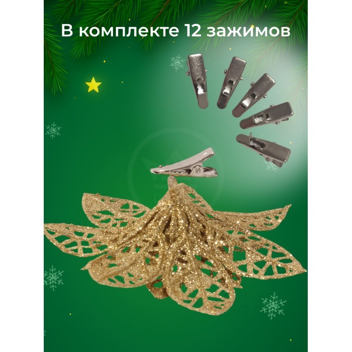 Набор Цветы Пуансеттия (12 штук - 10 см+зажимы 12шт) золото 266222