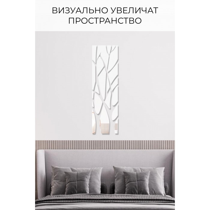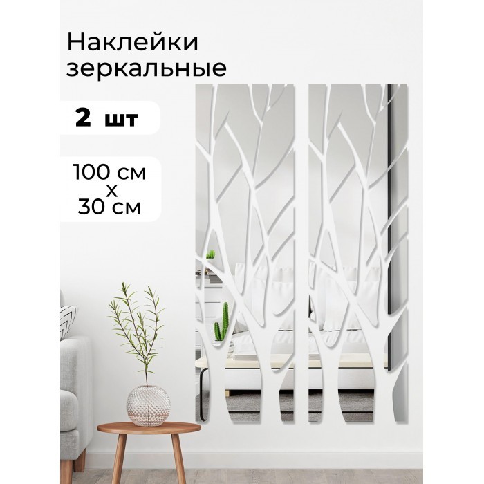 Интерьерные зеркальные наклейки Дерево 2шт (120*28см- 2 шт ) серебро 265532