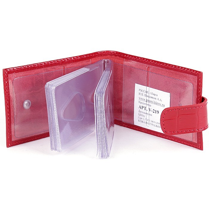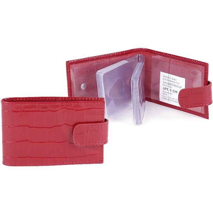 Кредитница Premier-V-219 натуральная кожа (18 листов, с хляст) натуральная кожа красный крокодил (115) 117287